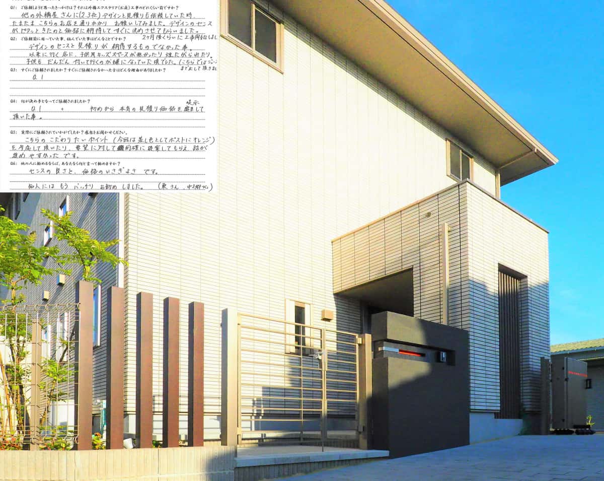 こちらのこだわりたいポイント(今回は差し色としてポストにオレンジ)を考慮して頂いたり、要望に対して的確に提案してもらえて話が進めやすかったです。