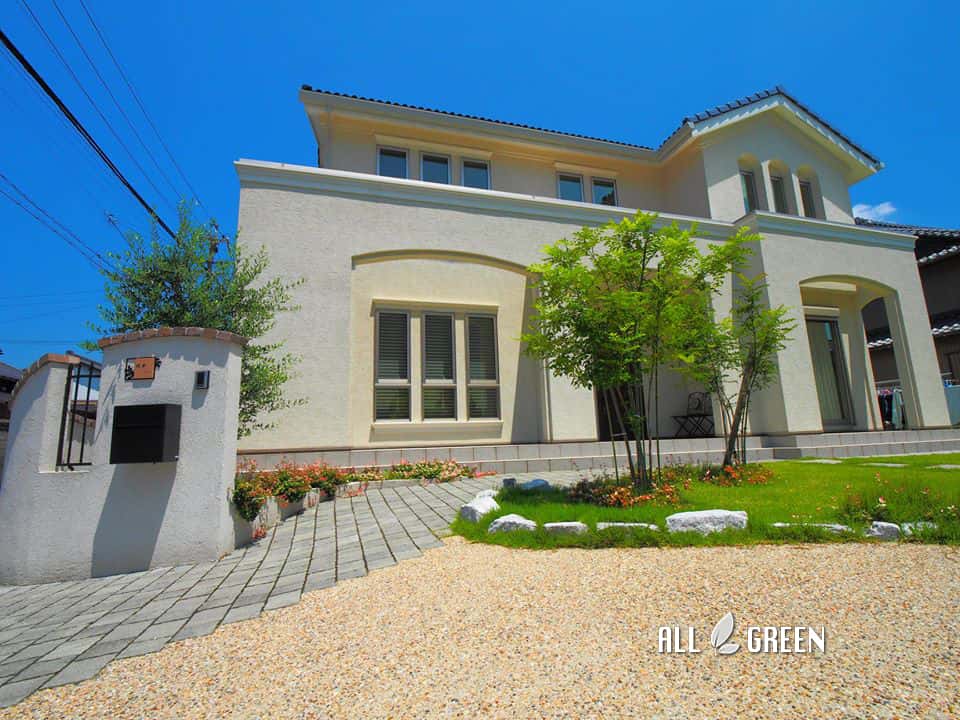 稲沢市に建つおしゃれな三井ホームの新築にマッチしたシンプルヨーロピアンな外構デザイン