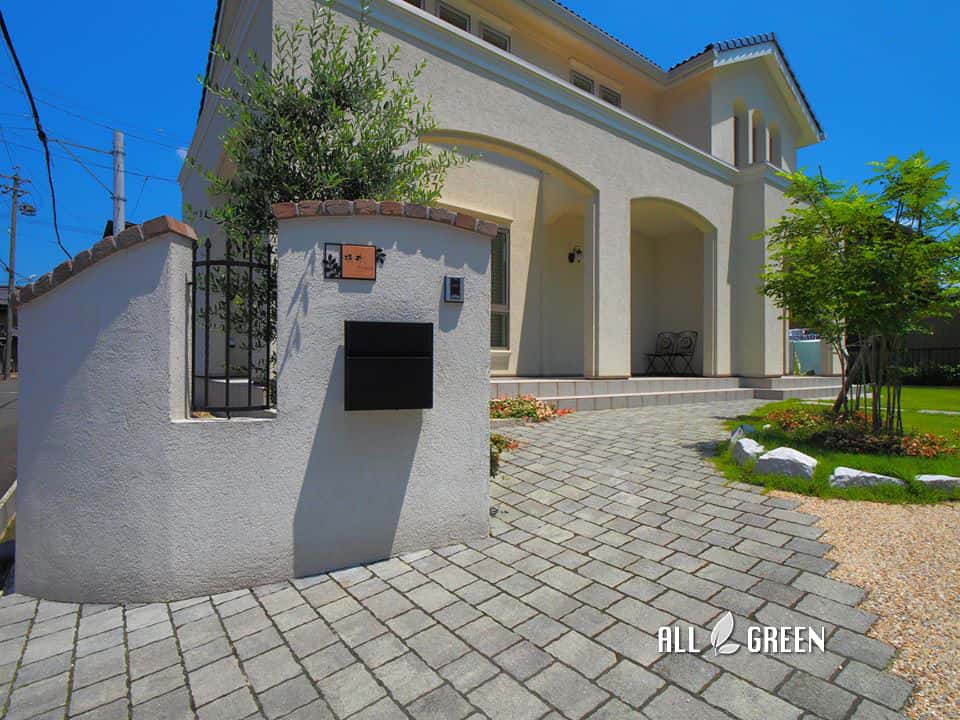 稲沢市に建つおしゃれな三井ホームの新築にマッチしたシンプルヨーロピアンな外構デザイン