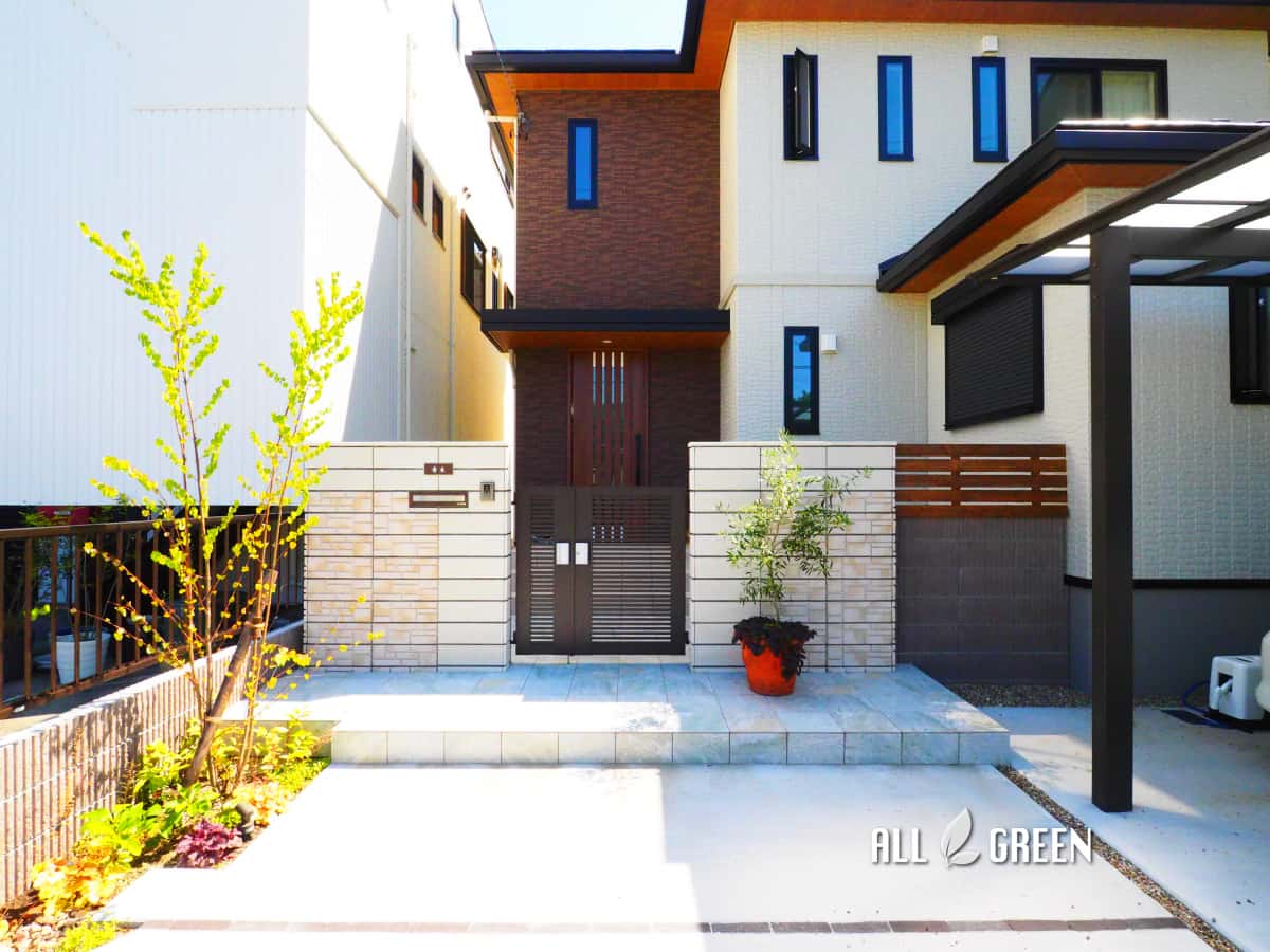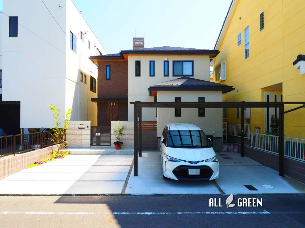 敷地を上手く活用した2台用カーポートのある清須市の新築外構
