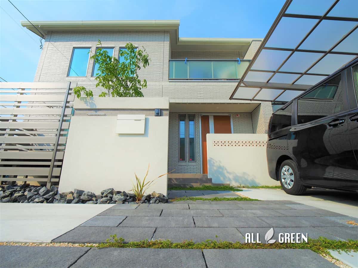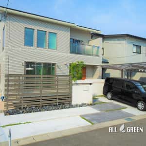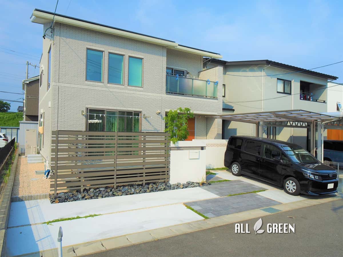 四日市市の新築外構_幅の違う板を用いた木調フェンス