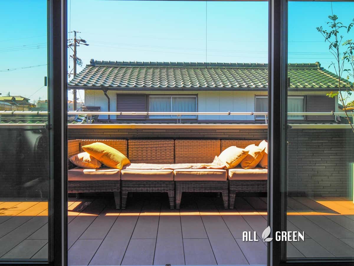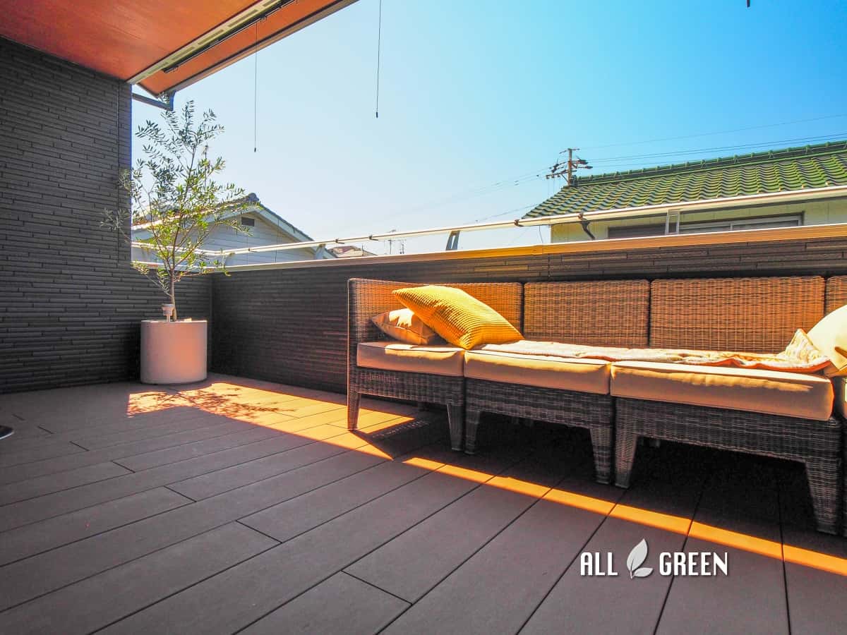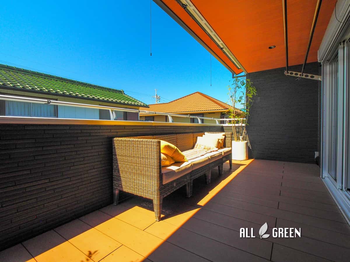 シェードとファニチャーを設置した名古屋市守山区のバルコニーデザイン