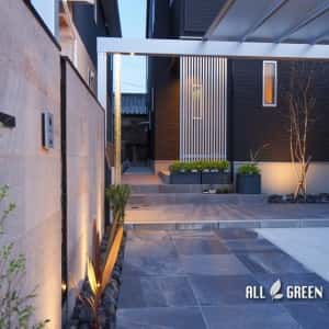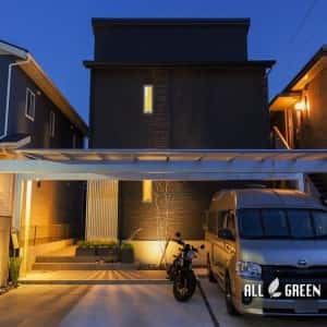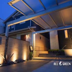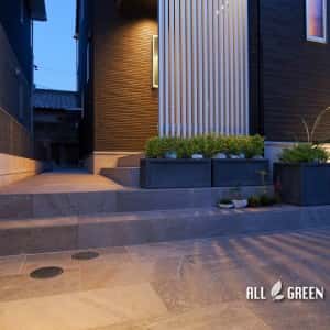 オリジナルエクステリア_名古屋市守山区のモノトーンモダンな新築外構の夜景