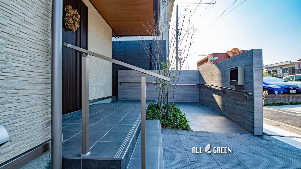 名古屋市守山区の平屋家屋に杉板RC柄タイルを合わせたシンプルモダンな新築外構