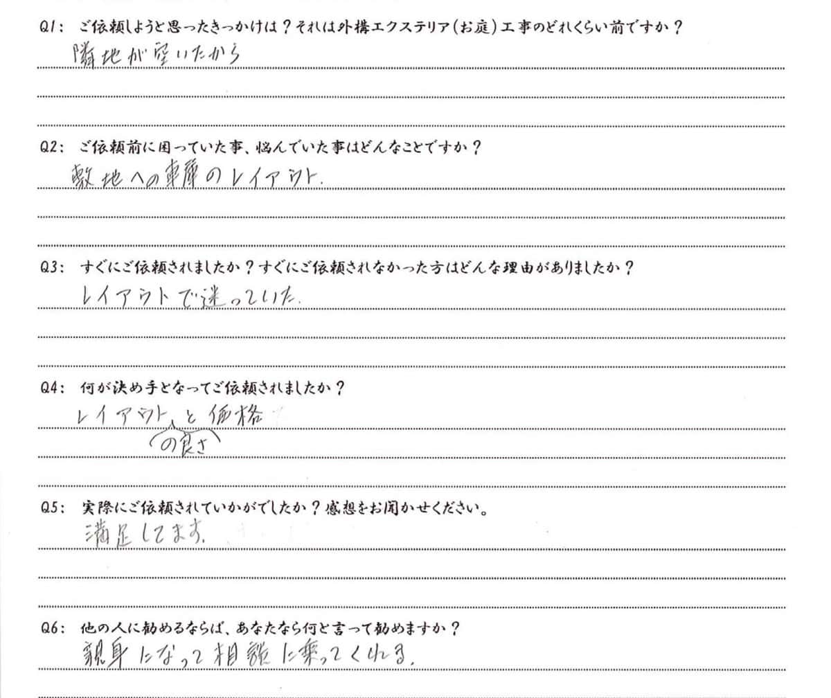 Q1:ご依頼しようと思ったきっかけは? それは外構エクステリア(お庭)工事のどれくらい前ですか?