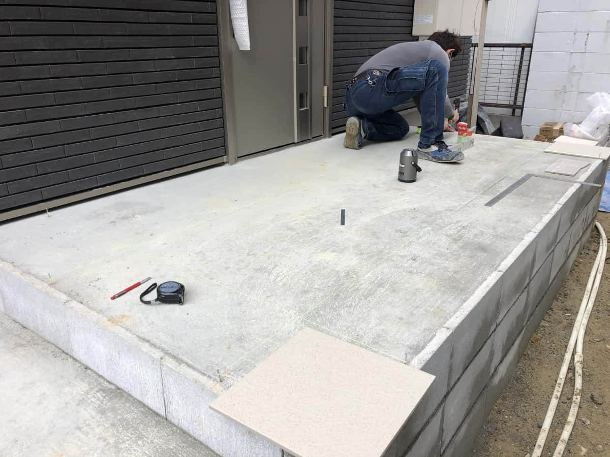 コンクリートの養生期間も終わり今日からタイル工事です。