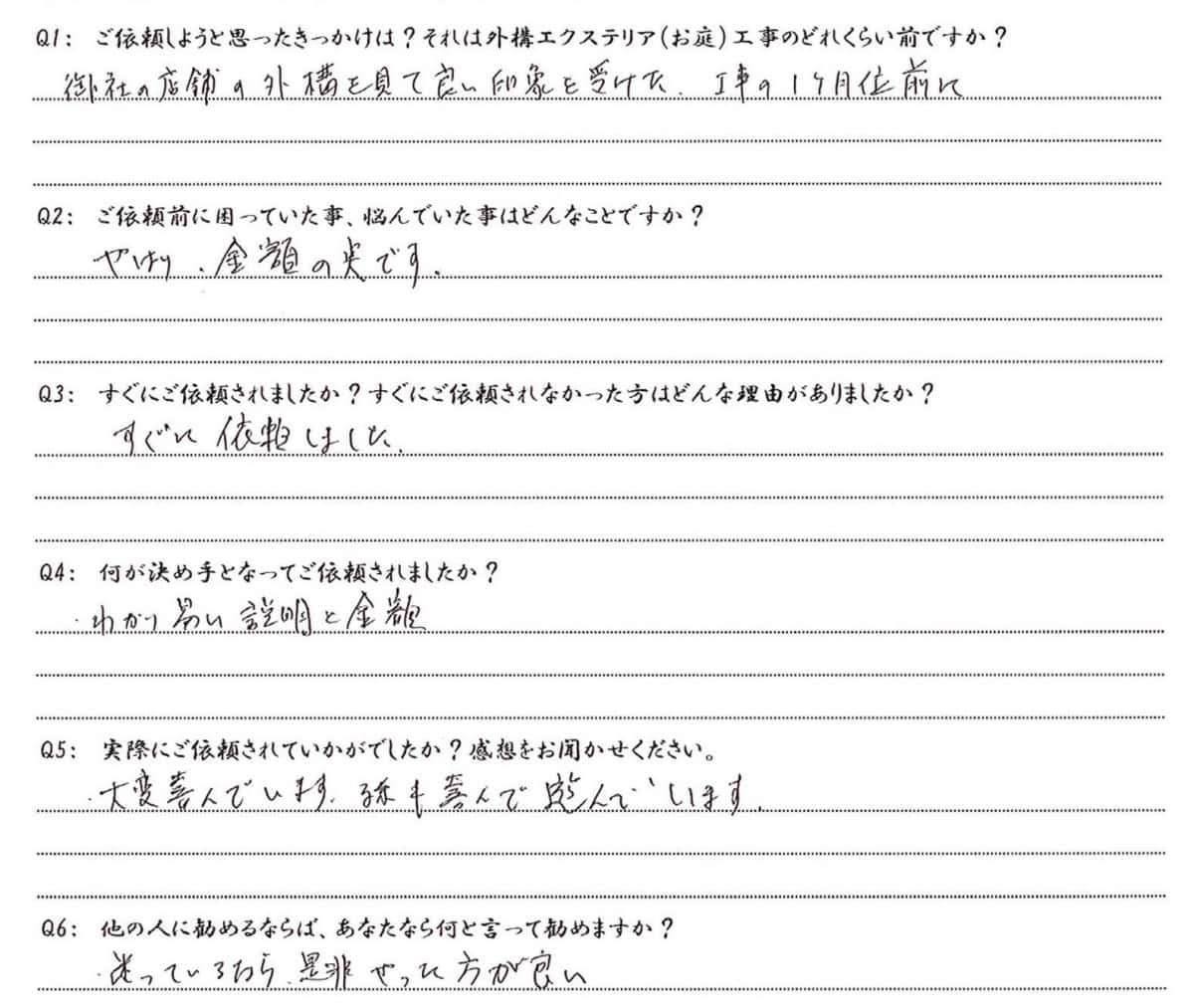 Q5:実際にご依頼されていかがでしたか? 感想をお聞かせください。