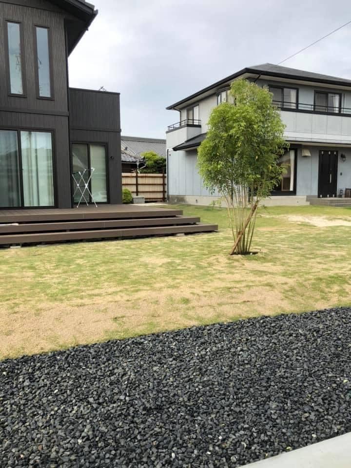 広いお庭に今回は天然の芝の施工させていただきました。