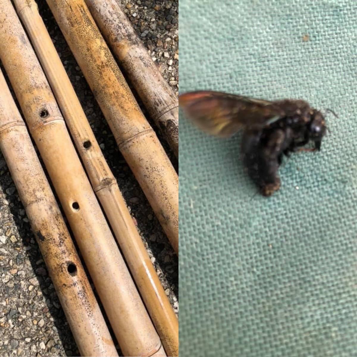 竹に穴を開けて生息するタイワンタケクマバチだと思われます。