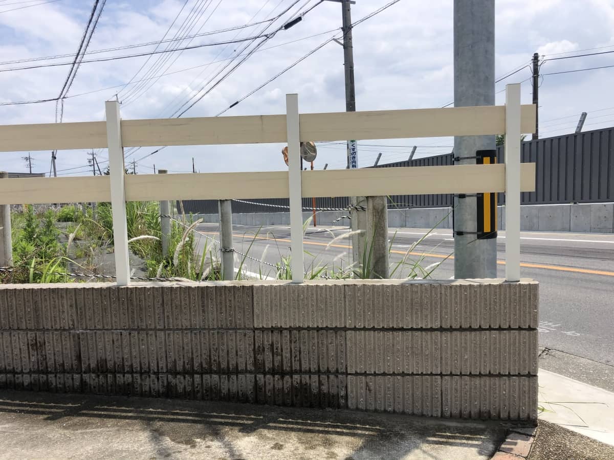 影響部を撤去して新たに化粧ブロックを積みフェンスも復旧しました。
