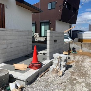 影響部を撤去して新たに化粧ブロックを積みフェンスも復旧しました。