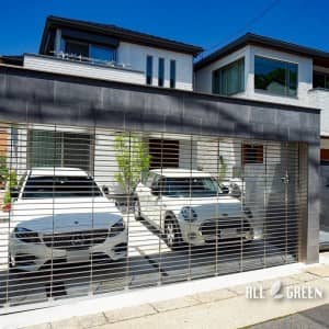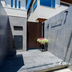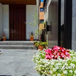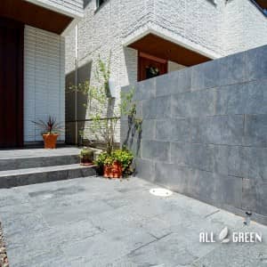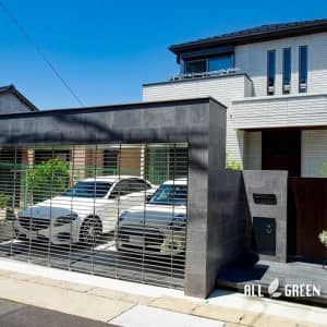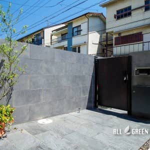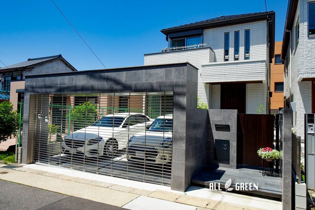 艶のあるタイルとシャッターゲートが特徴の名古屋市千種区にあるクローズ外構