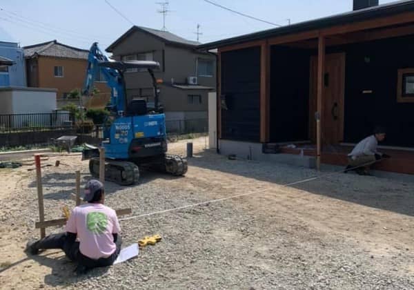 今日は着工の様子を。 着工日には水盛遣方で丁張りをやります。 木材で鳥居みたいのが丁張りです。完成の位置と高さを糸で表すものなの...