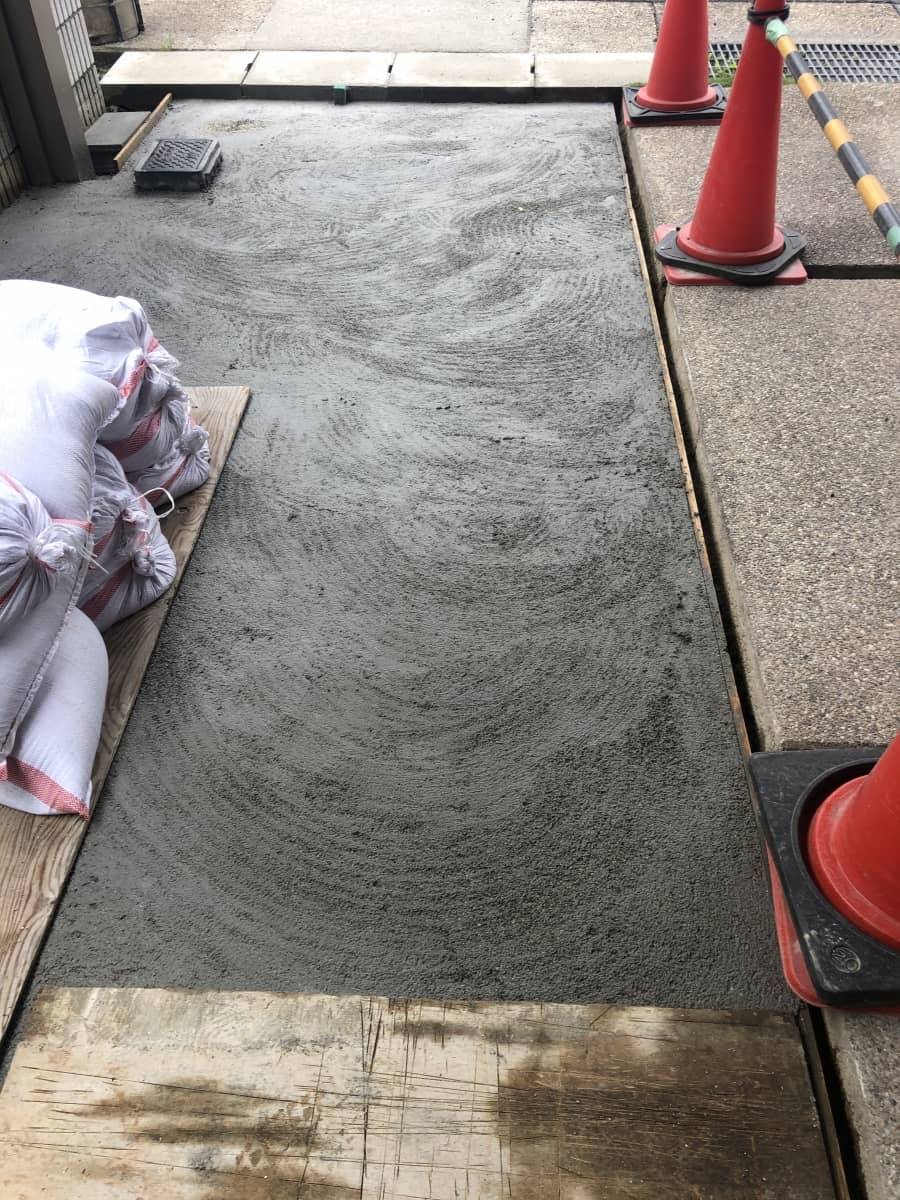 アプローチは30cm x60cmの石の平板の仕上げになります。