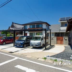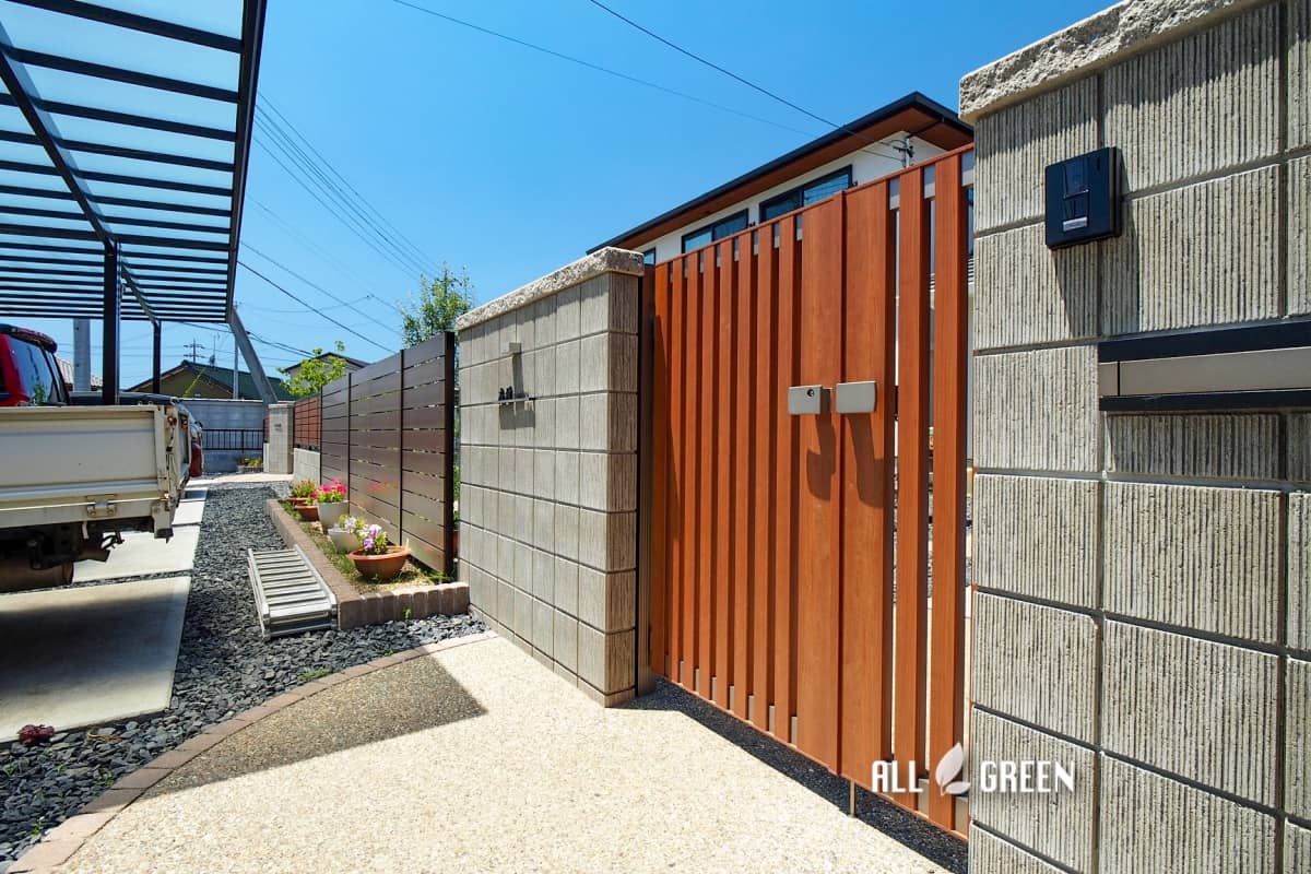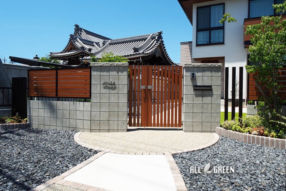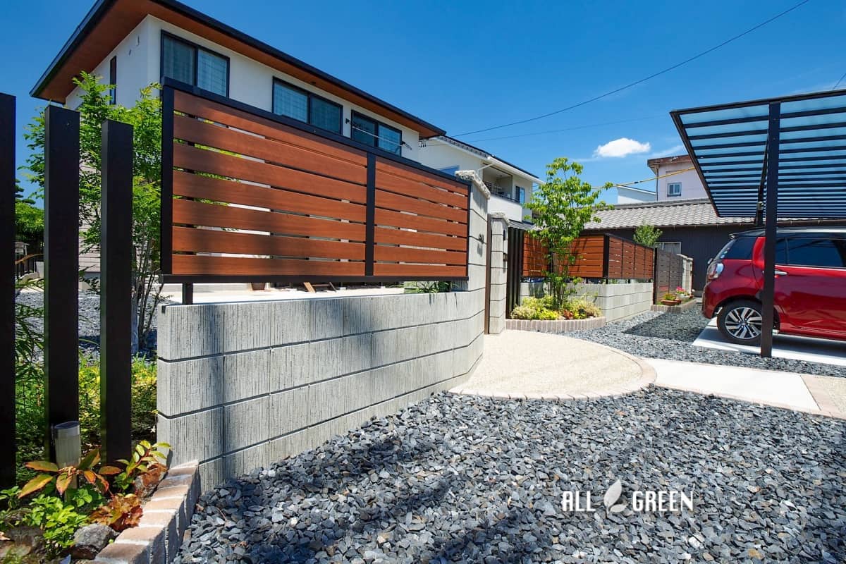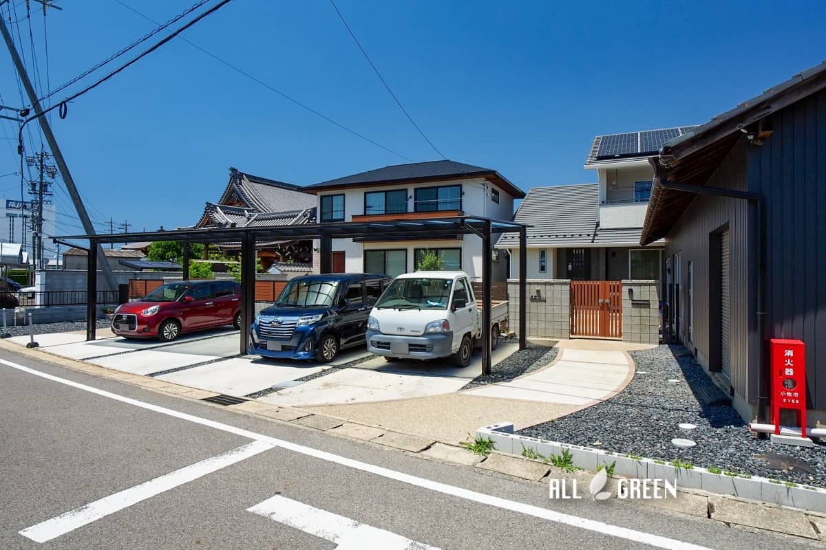 緩やかなカーブと柔らかい木調でつくられた小牧市にある別当二世帯住宅のファサード