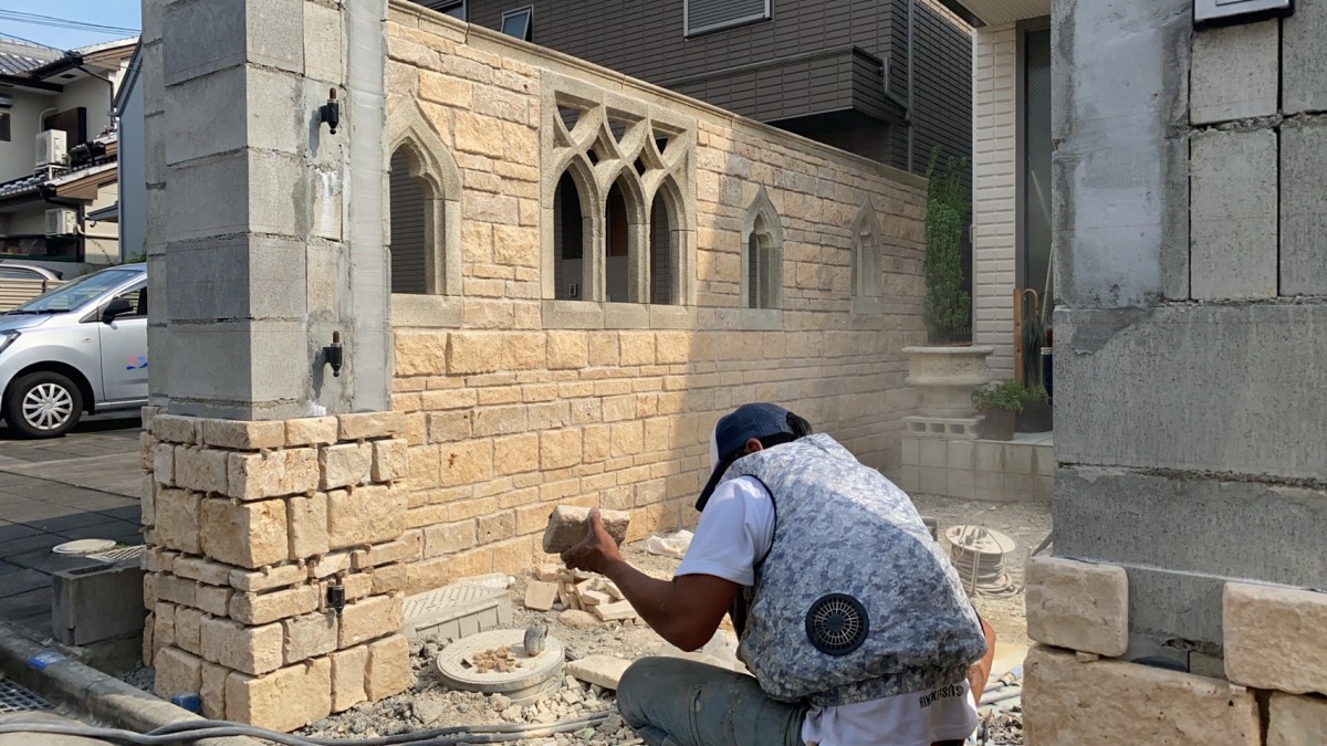 名古屋市東区H様邸 石貼りの様子