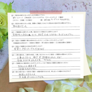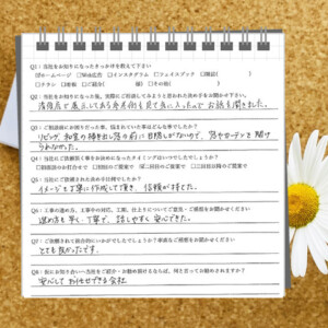 Q6:工事の進め方、工事中の対応、工期、仕上がりについてご意見・ご感想をお聞かせください