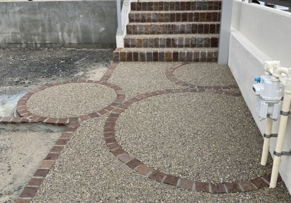 洗い出しのアプローチが完成しました。 気付きましたか? そうです。 ミッキーなんです。 フェンスもミッキーなんですよ!
