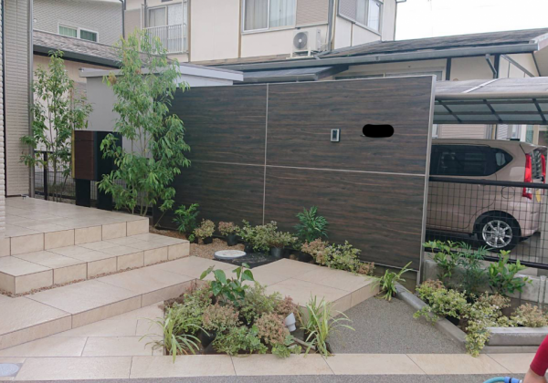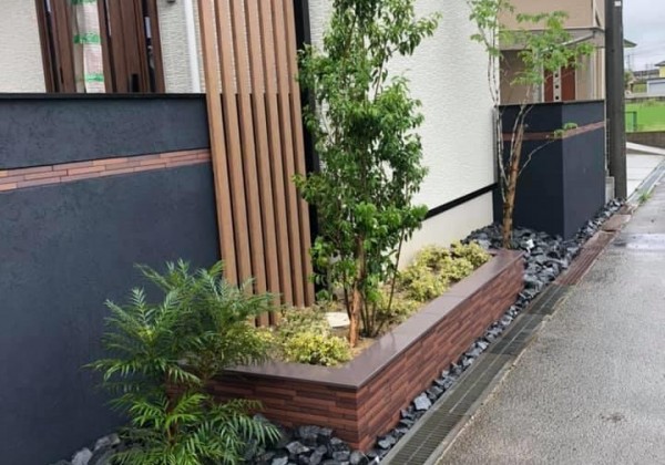 雨続きの天候の中、植栽工事が完了しました。 玄関前の植栽と花壇のマッチが、いいですね。 黒い壁の無機質感とグリーンがいいですね。...