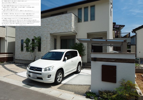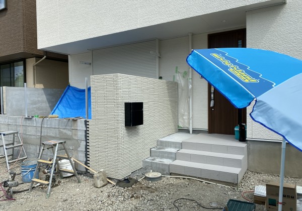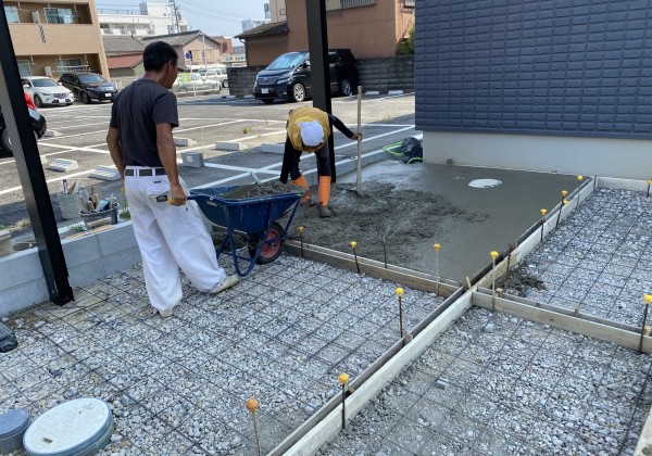 いよいよ完成間近です。 型枠も終わり、土間コンクリートの打設となりました。 黒いカーポートとタイルの門柱が色合いがいいですぬね。...