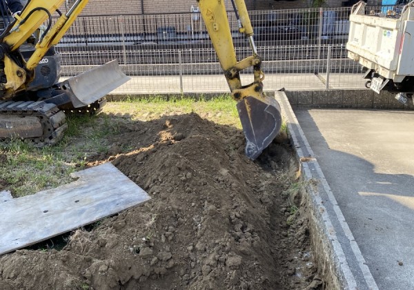 本日より工事が始まりました。 今回は駐車場の拡張工事です。 お庭も一新しますので楽しみにしてください。