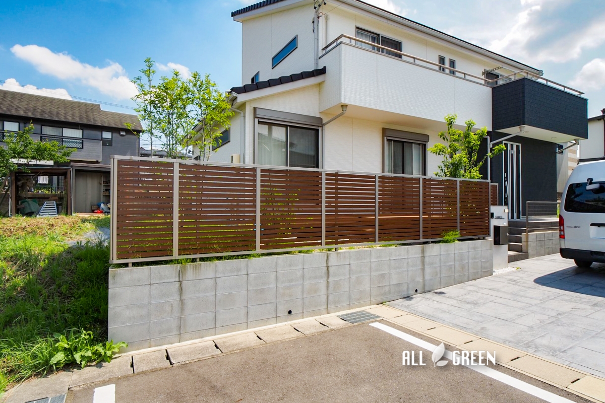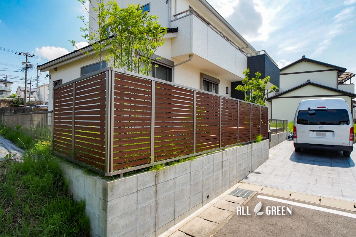 木調で揃えたウッドデッキとフェンス、東海市にあるお庭は木漏れ日溢れる優しい外構へとリフォーム。