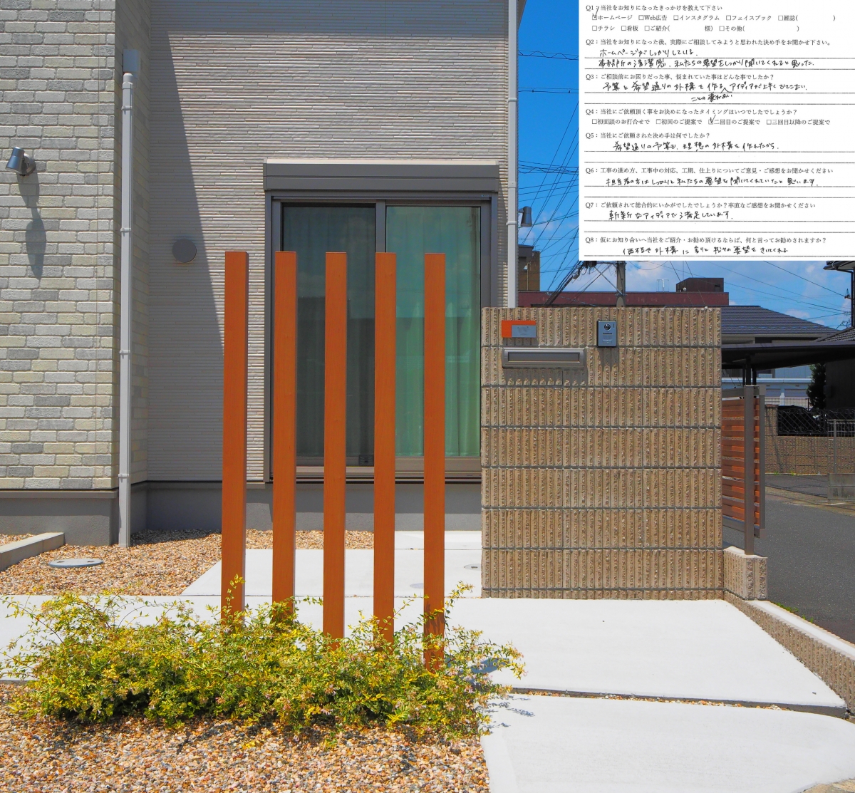 しっかりと私たちの要望を聞いてアイデアを出してもらい予算内で斬新な理想の外構が出来ました。一宮市/O邸