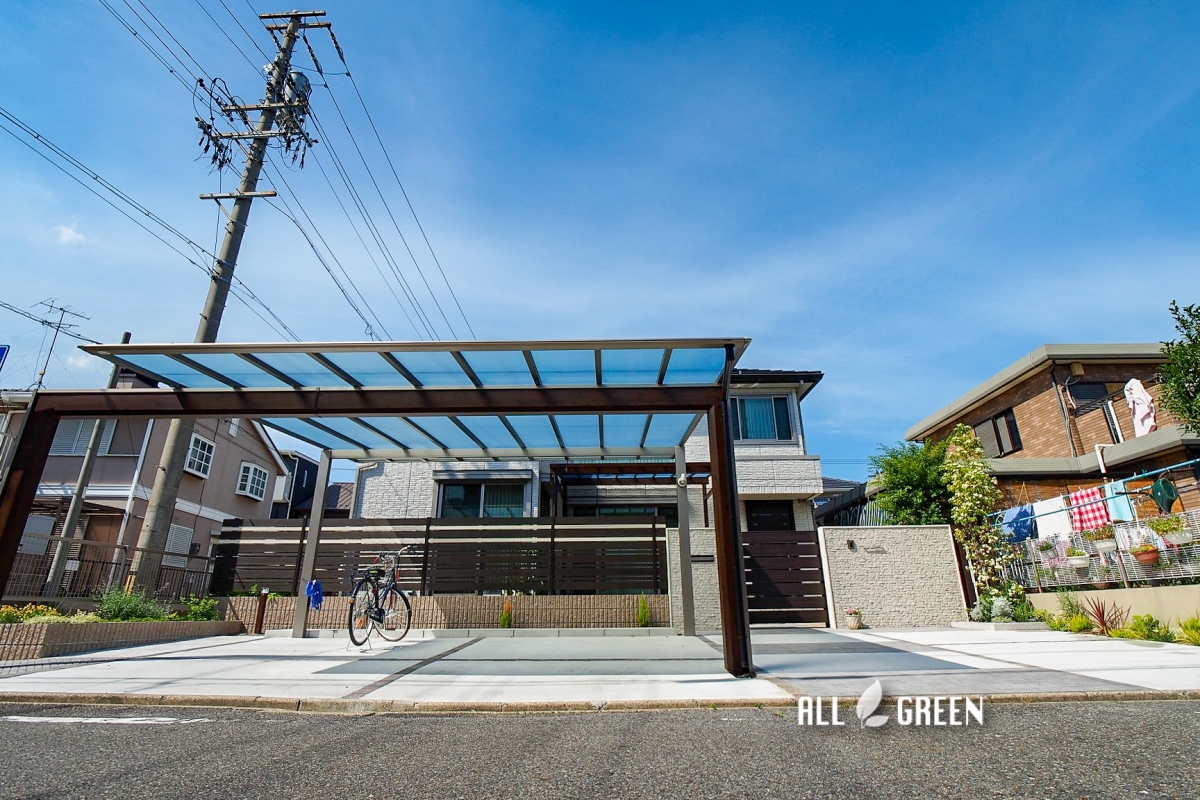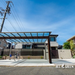 大きくて立派なカーポートは「かっこいいカーポートがいいな」というお施主様のご要望から、スカイリードという商品を施工させていただきました。