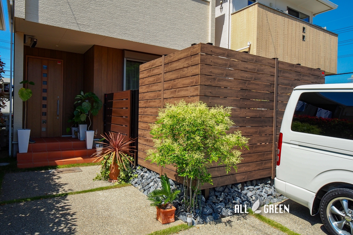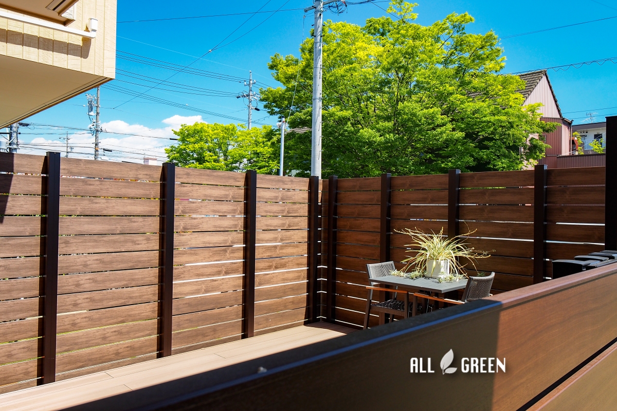 しっかり囲ってプライベート空間満載!一宮市のウッドデッキと目隠しフェンス