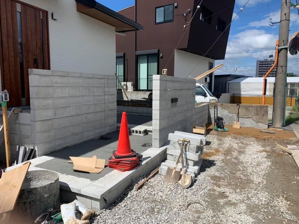 門塀の下地ブロックが完了しました。