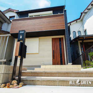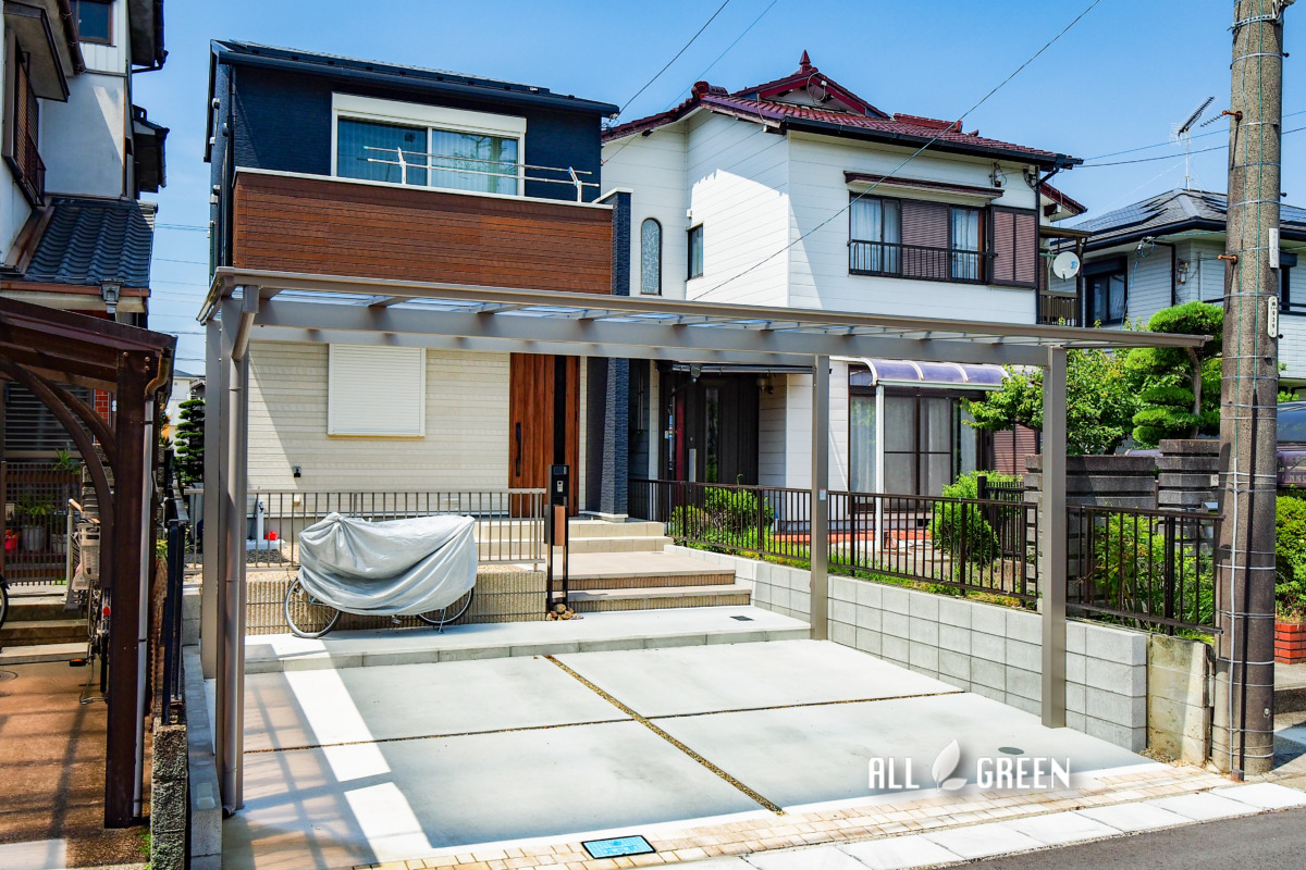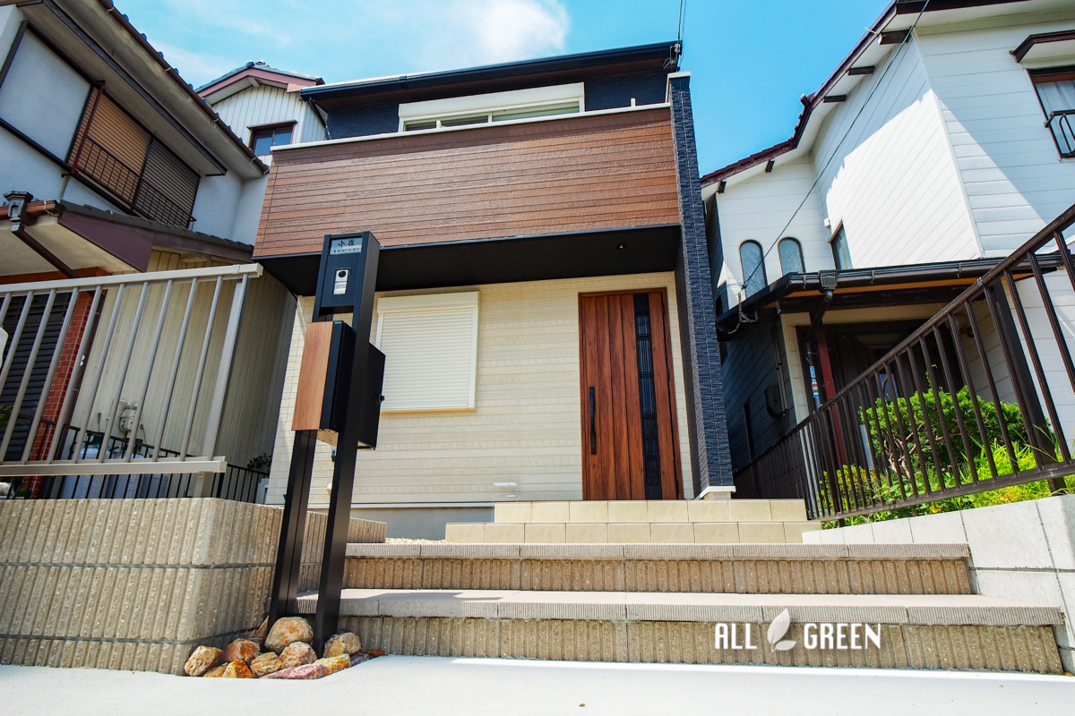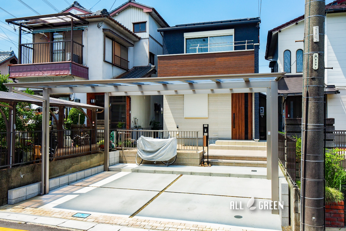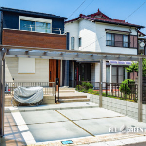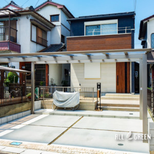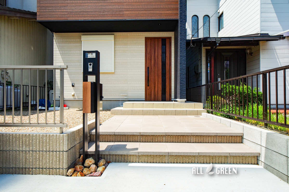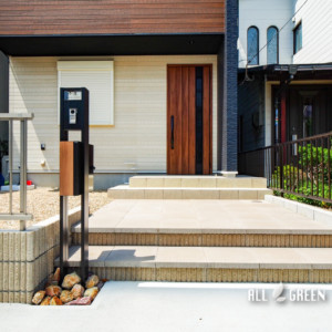 色味や形状で邸宅の雰囲気を崩さずデザインした蟹江町にある新築外構