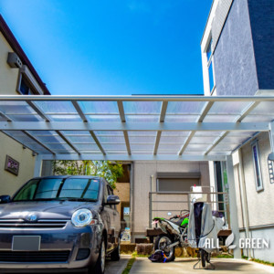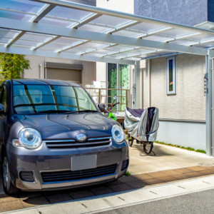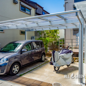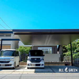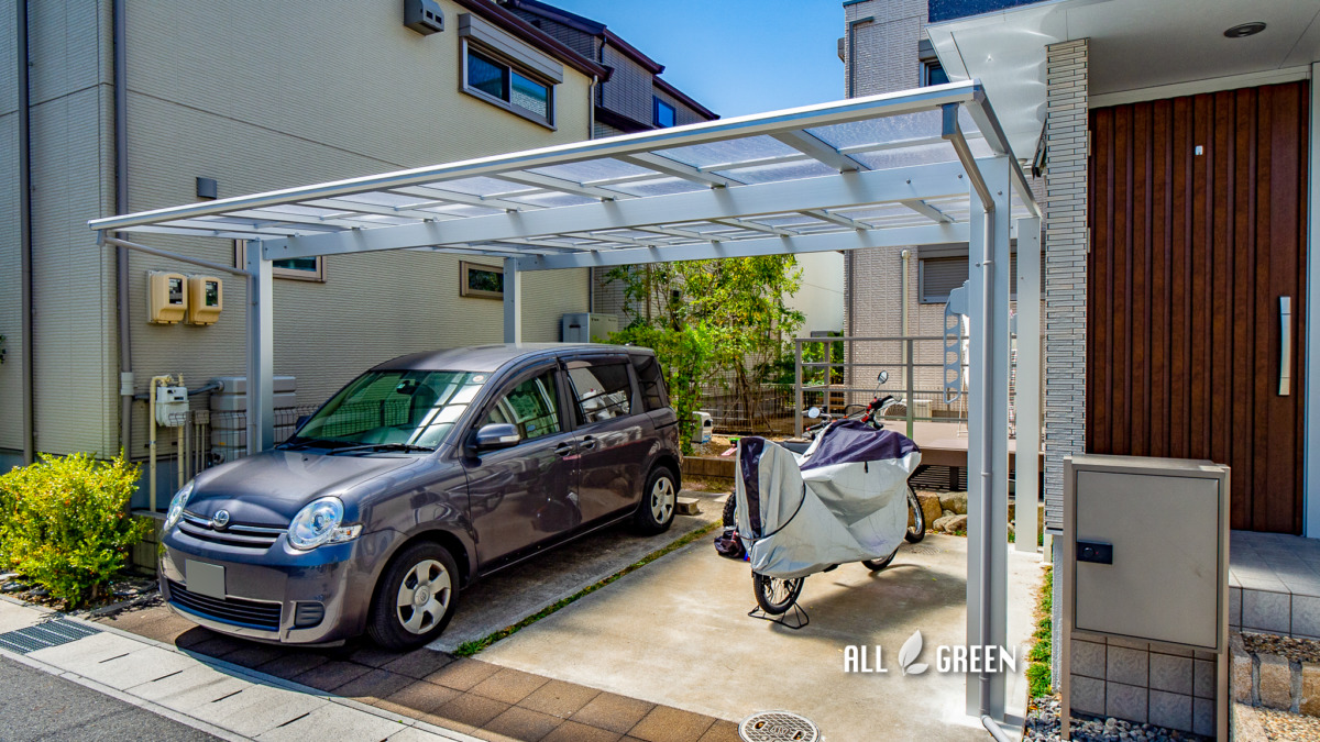 大きなカーポートの屋根で守るのは車だけではありません!二輪車も一緒に守る名古屋市西区のカーポート