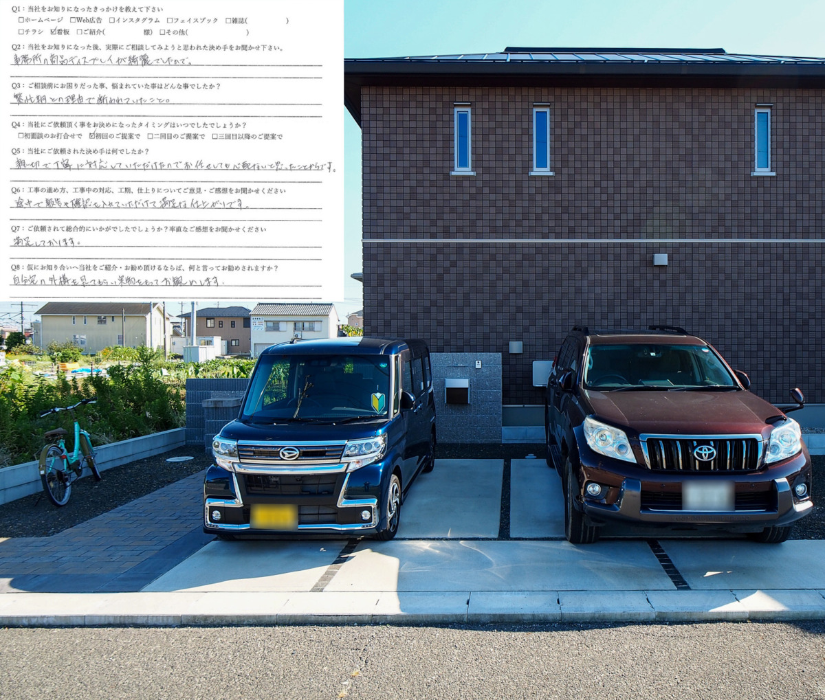 自分宅の外構を見てもらって実物をもってお勧めします。