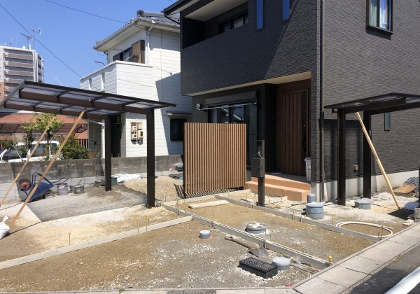 素敵な門塀周りも終わり、カーポート、オーバーゲートの設置も予定通りに終わり、いよいよ本日 駐車場土間コンクリート打設です。 門塀...