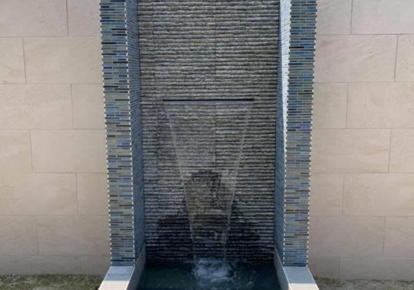素敵な壁泉が完成しました。 水の落ちる音とユラユラ揺れながら落ちる水が最高の癒しですね。 水場の下には照明があり夜の雰囲気も最高...