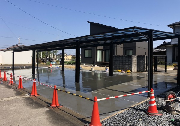 凄い量の生コンクリートの打設も無事に終わり、綺麗に仕上がりました。 コンクリートは養生期間がありまして大体1週間くらいで駐車場と...