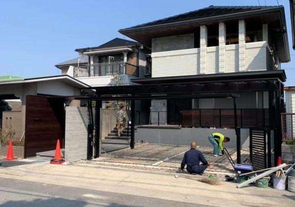 やっとカーポートとサイクルポート、フェンスの施工が終わりました。 この後はアプローチを洗い出しコンクリート仕上げ、駐車場土間コン...