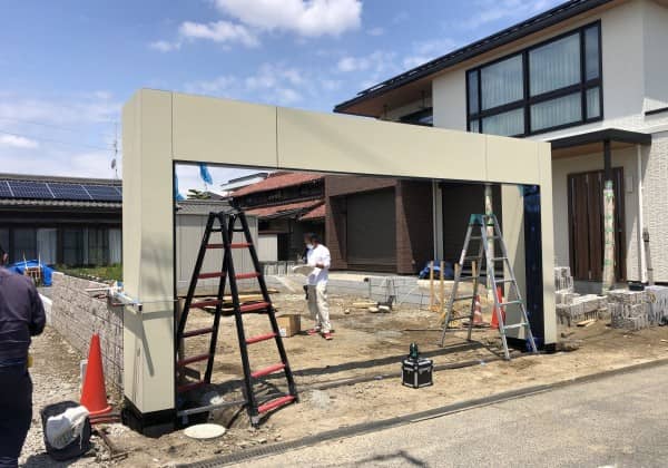 シャッターゲート本体の作業が完了しました。 ゲート仕上げ材は建物と同じタイルを使用して仕上げます。 一体感があっていいと思います...