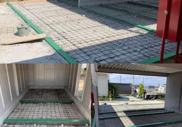 だいぶ工事も進んでまいりました。 ガレージも完成し土間の準備になりました。 レンガ見切り機能門柱も完成しました。 メッシュ筋を敷...