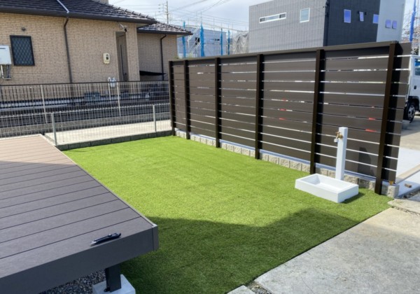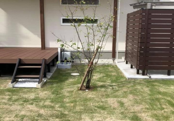 いよいよ植栽となりました。 シンボルツリーと芝がいい雰囲気ですね。 デッキから眺める時間が素敵だと思います。