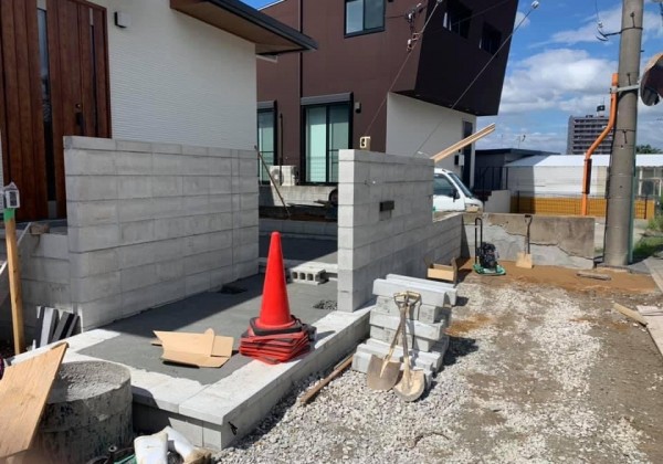 門塀の下地ブロックが完了しました。 玄関ポーチと階段とタイルで門塀はタイルと 塗装仕上げでまいります。 カーポートとフェンスとの...