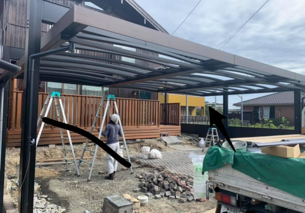 カーポートの工事が始まりました。 3台用の大きなカーポートですね。 色も素敵ないい感じです。 完成が楽しみですね。