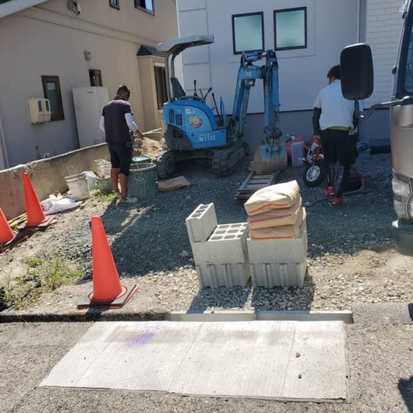 工事が着工しました。 いよいよ始まりました。 綺麗で素敵な外構を目指して工事をしていきます。 楽しみにしてください。