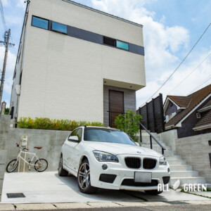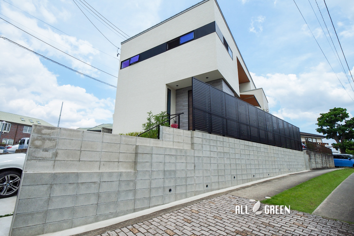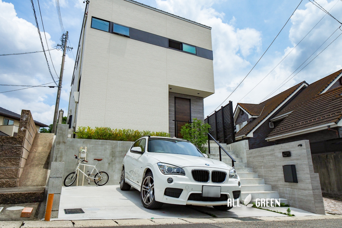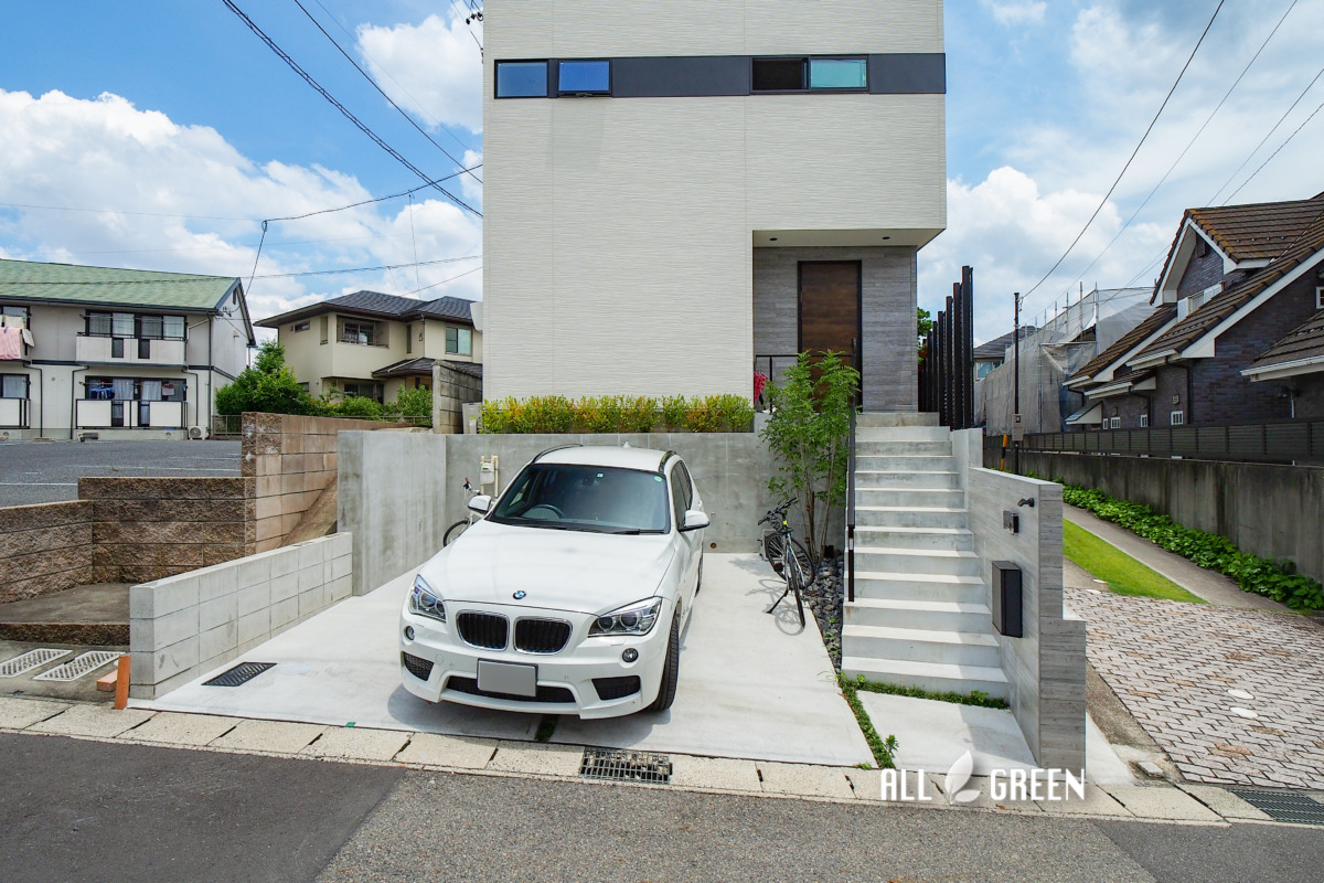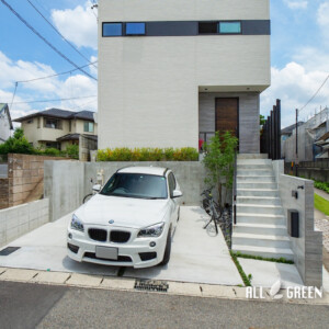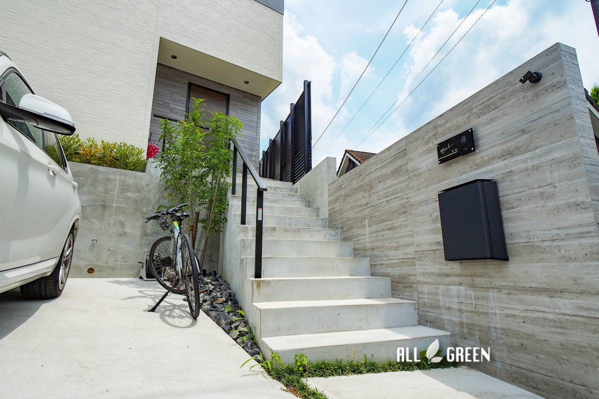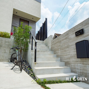 高低差のある邸宅はアプローチ階段を一つの見せ場に。名古屋市瑞穂区の新築外構
