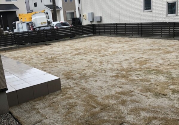 芝の施工が完成しました。 作業途中から雨に降られてしまいましたが 綺麗に作業をしました。 春が待ち遠しいですね。