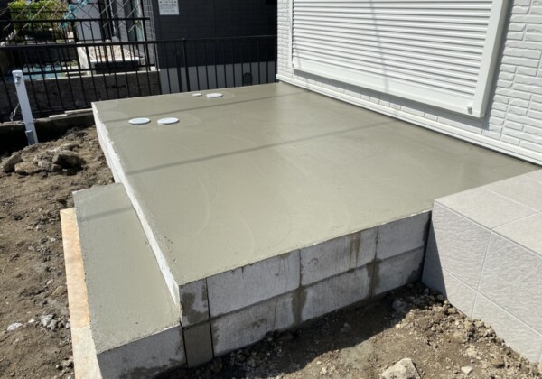 タイルテラスの下地コンクリートが完了しました。 掃き出し窓にタイルテラスなマストですね。 完成が楽しみですね。