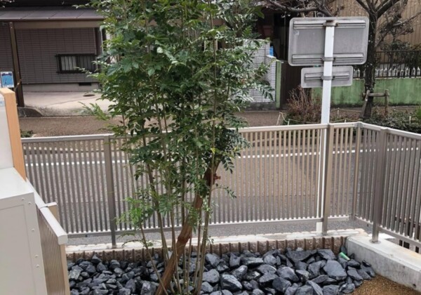 本日は植栽作業です。 シマトネリコと割グリを角に配置しました。 やはり緑が映えますね。