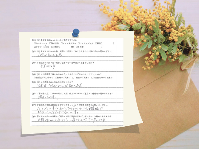 Q6:工事の進め方、工事中の対応、工期、仕上がりについてご意見・ご感想をお聞かせください