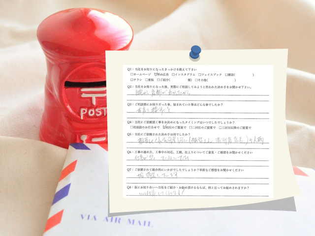 お店探しに困っていましたが自宅から近く、なにより営業レディの人柄が気に入りました。良い仕事してくれます。あま市/M邸