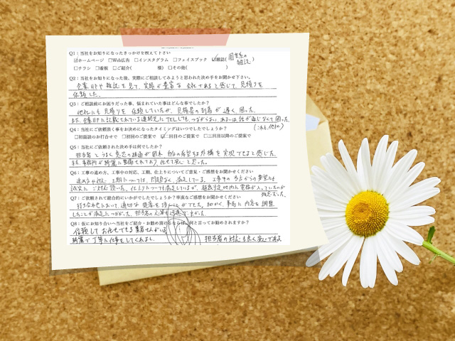 Q6:工事の進め方、工事中の対応、工期、仕上がりについてご意見・ご感想をお聞かせください